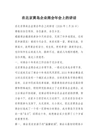 在北京黄岛企业商会年会上的讲话
