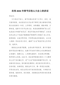 在局2026年春节后收心大会上的讲话
