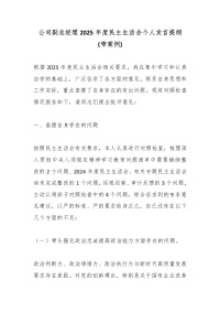 公司副总经理2025年度民主生活会个人发言提纲(带案例)