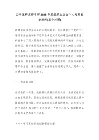 公司党群支部干部2025年度组织生活会个人对照检查材料(五个对照)