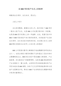 在XXX项目投产仪式上的致辞