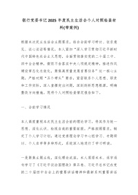 银行党委书记2025年度民主生活会个人对照检查材料(带案例)