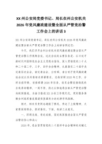 XX州公安局党委书记、局长在州公安机关2026年党风廉政建设暨全面从严管党治警工作会上的讲话3