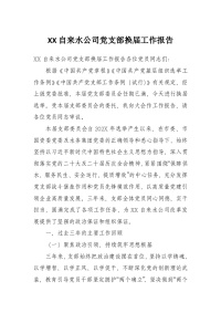XX自来水公司党支部换届工作报告