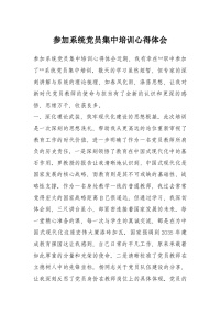 参加系统党员集中培训心得体会