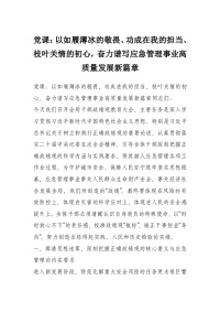 党课:以如履薄冰的敬畏、功成在我的担当、枝叶关情的初心,奋力谱写应急管理事业高质量发展新篇章