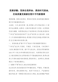 党课讲稿:坚持自我革命,勇担时代使命,在高质量发展新征程中书写新篇章