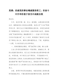 党课:忠诚党的事业竭诚服务职工,在奋斗中升华价值于担当中成就自我