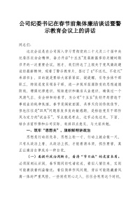 公司纪委书记在春节前集体廉洁谈话暨警示