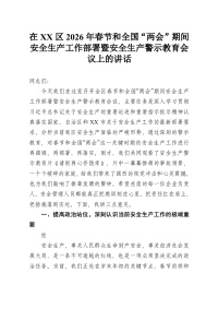 在XX区2026年春节和全国“两会”期间安全生产工作部署暨安全生产警示