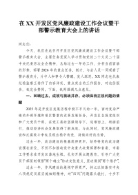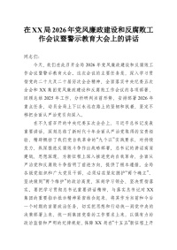 在XX区2026年党风廉政建设和反腐败工作暨领导干部警示