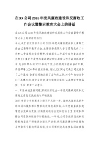 在XX公司2026年党风廉政建设和反腐败工作会议暨警示
