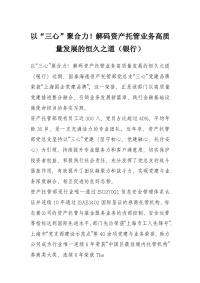 以“三心”聚合力!解码资产托管业务高质量发展的恒久之道(银行)
