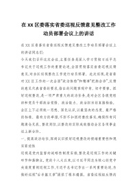 在XX区委落实省委巡视反馈意见整改工作动员部署会议上的讲话