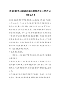 在XX区优化营商环境工作推进会上的讲话(精品)2