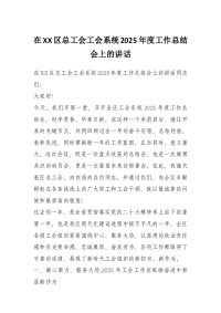 在XX区总工会工会系统2025年度工作总结会上的讲话