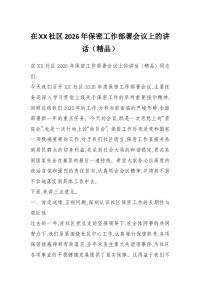 在XX社区2026年保密工作部署会议上的讲话(精品)