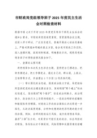 市财政局党组领导班子2025年度民主生活会对照检查材料