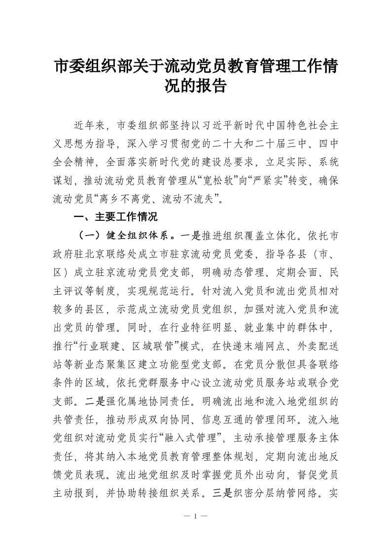 首页工作文档市委组织部关于流动党员教育管理工作情况的报告
