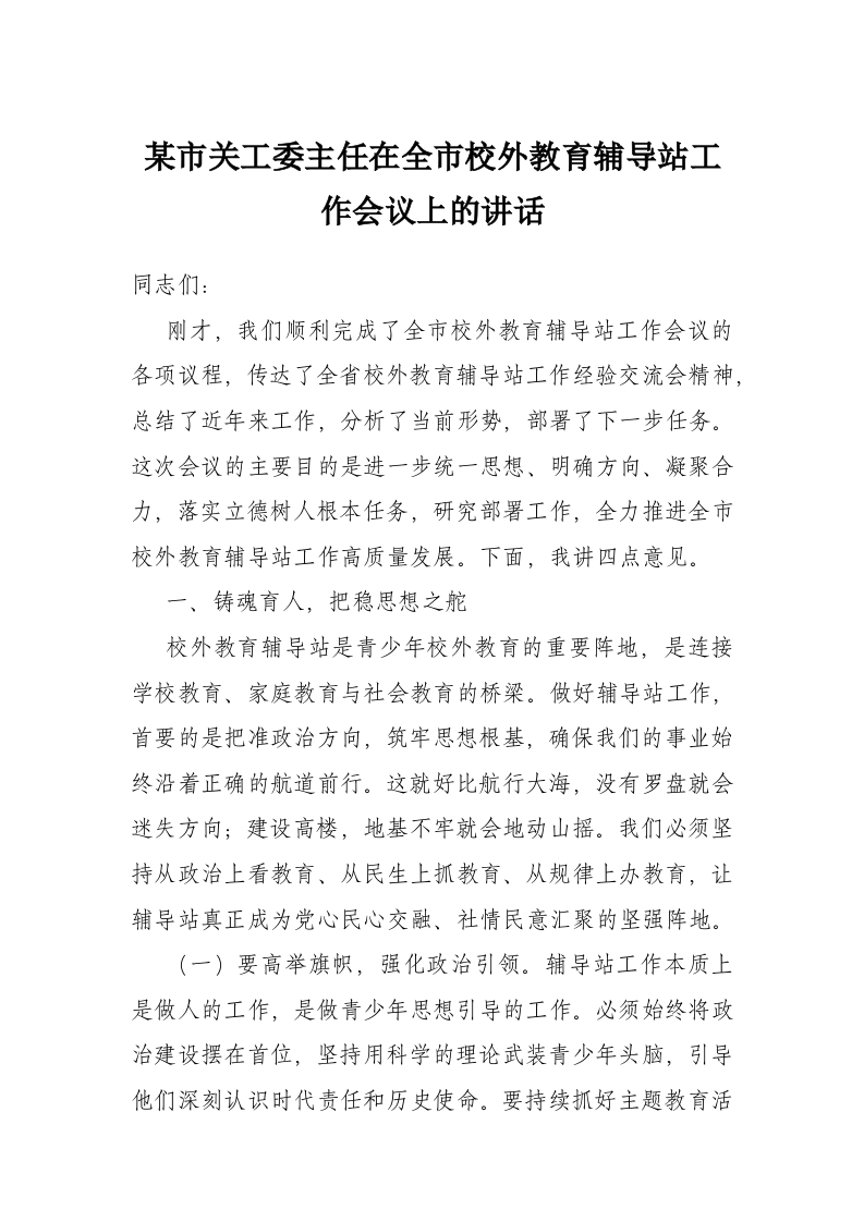首页材料汇编某市关工委主任在全市校外教育辅导站工作会议上的讲话