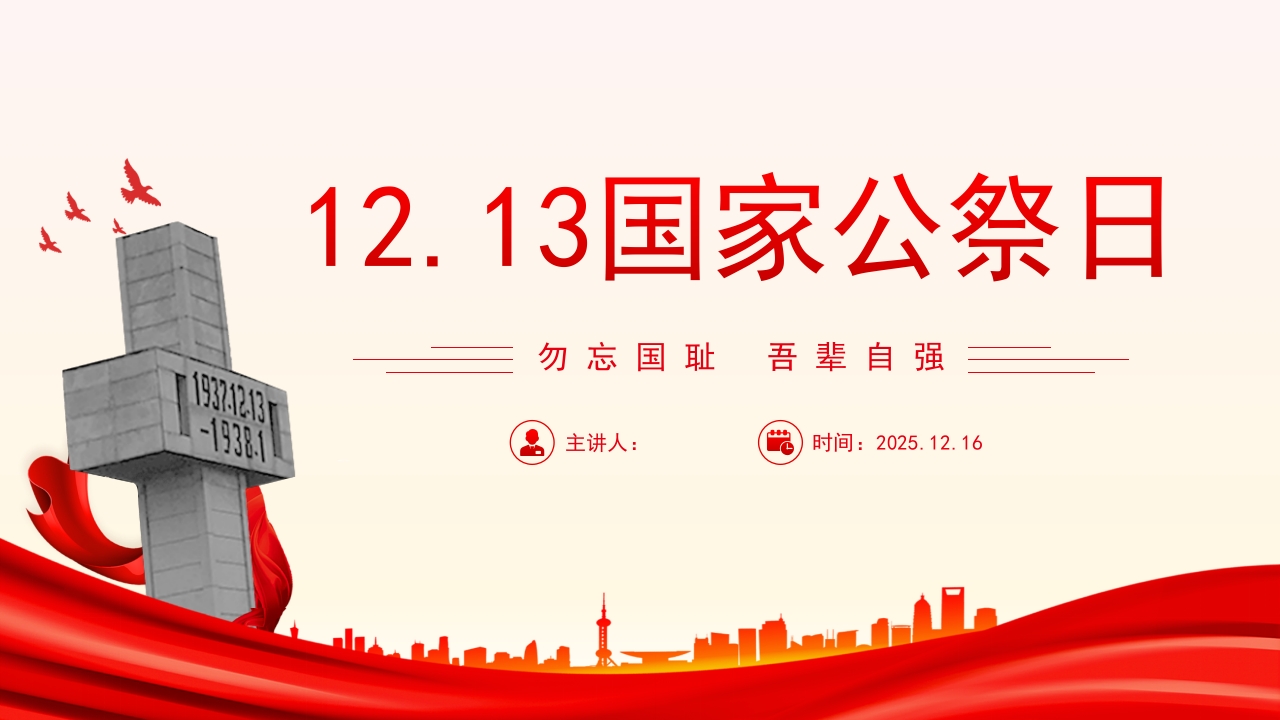 首页PPT模板简洁大气12.13国家公祭日PPT勿忘国耻吾辈自强爱国教育课件