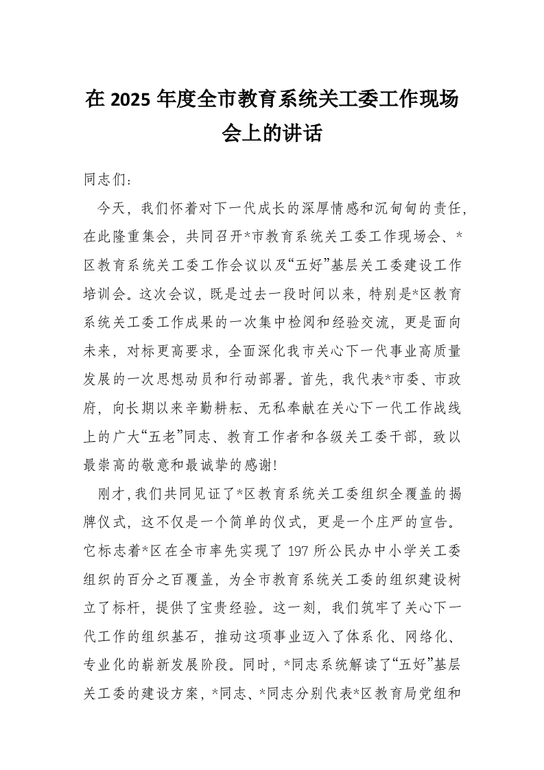首页讲课讲稿在2025年度全市教育系统关工委工作现场会上的讲话