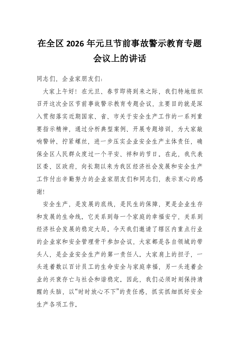 首页材料汇编在全区2026年元旦节前事故警示教育专题会议上的讲话