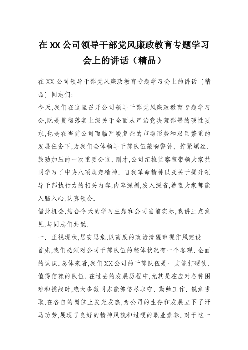 首页材料汇编在XX公司领导干部党风廉政教育专题学习会上的讲话(精品)