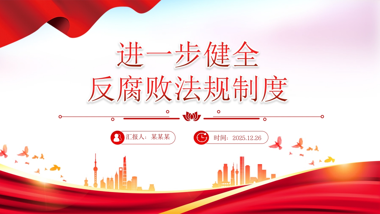 简洁大气进一步健全反腐败法规制度PPT反腐倡廉主题党课