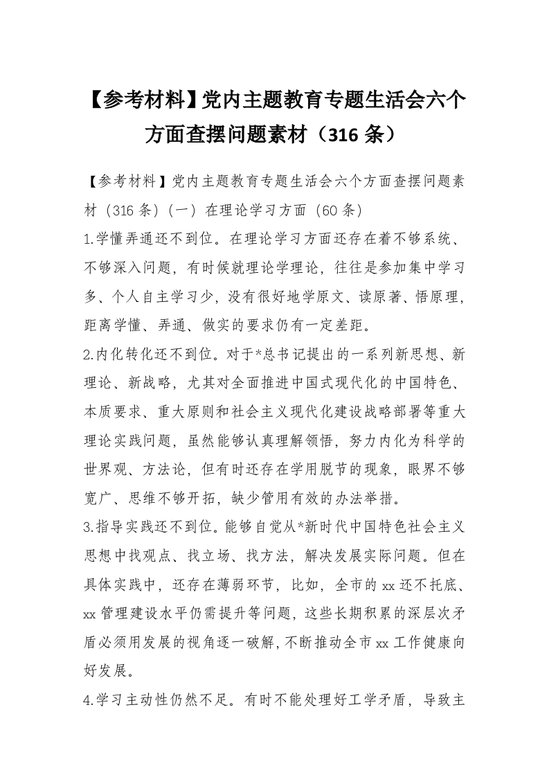 【参考材料】党内主题教育专题生活会六个方面查摆问题素材(316条)