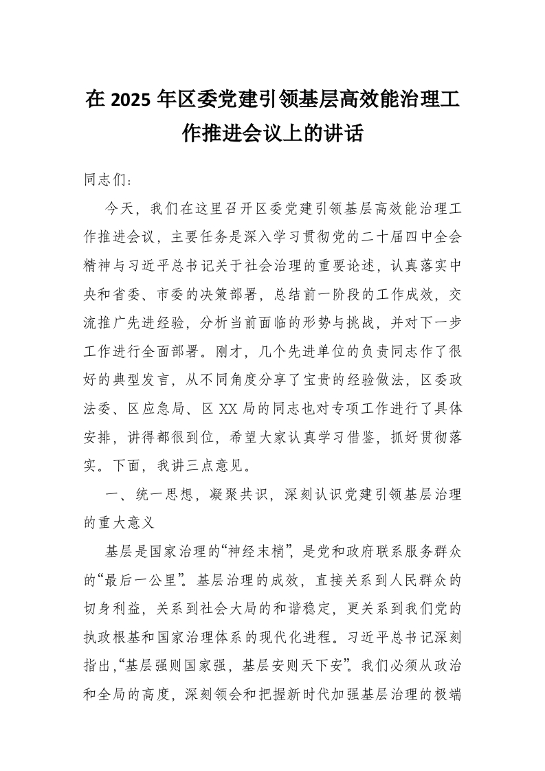 在2025年区委党建引领基层高效能治理工作推进会议上的讲话