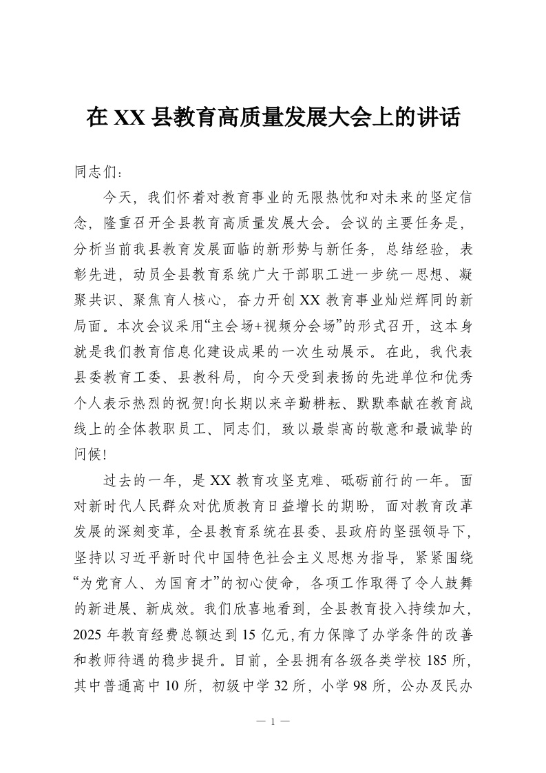 首页精选范文在XX县教育高质量发展大会上的讲话