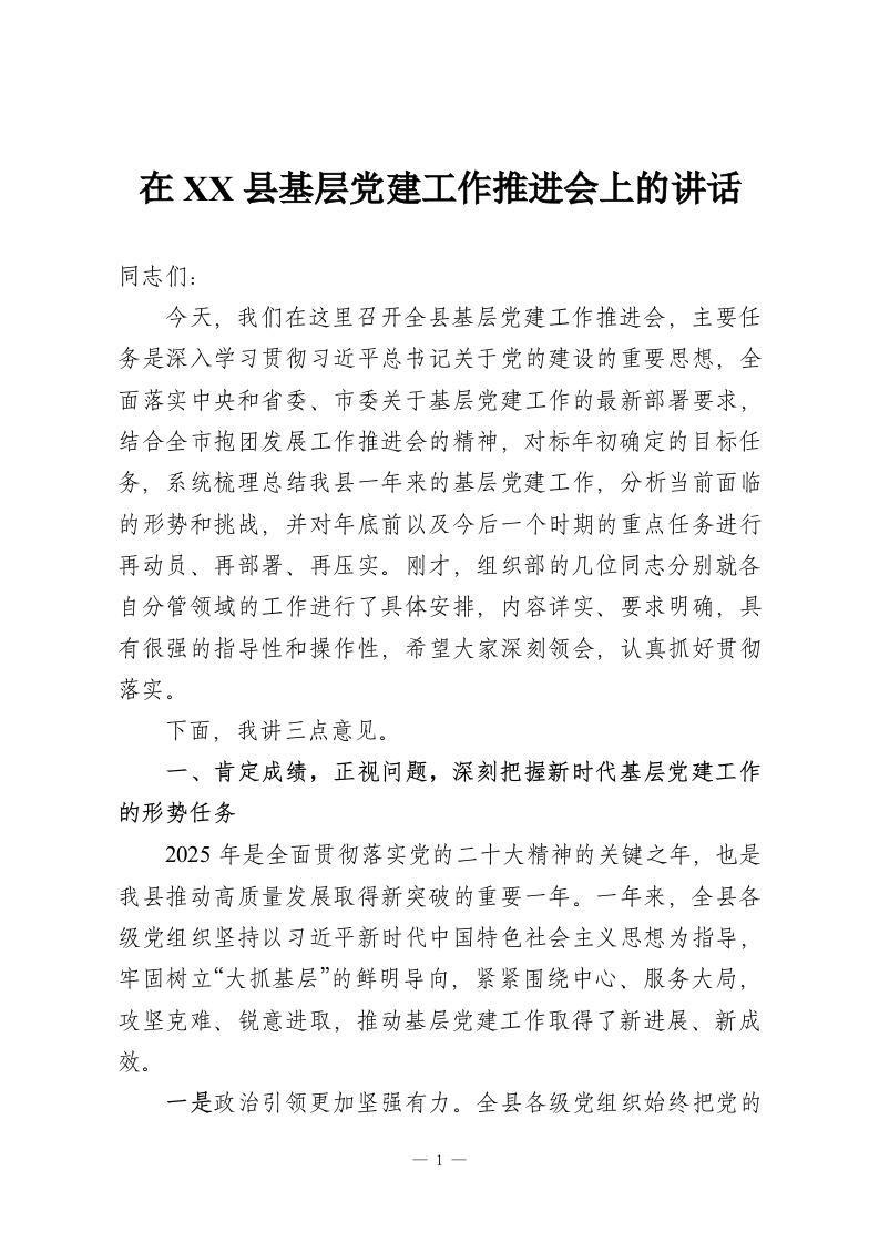 首页精选范文在XX县基层党建工作推进会上的讲话