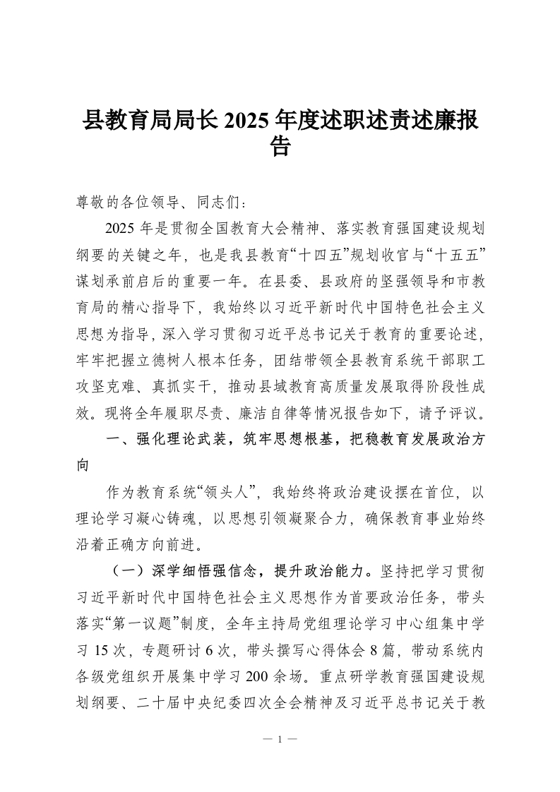 县教育局局长2025年度述职述责述廉报告