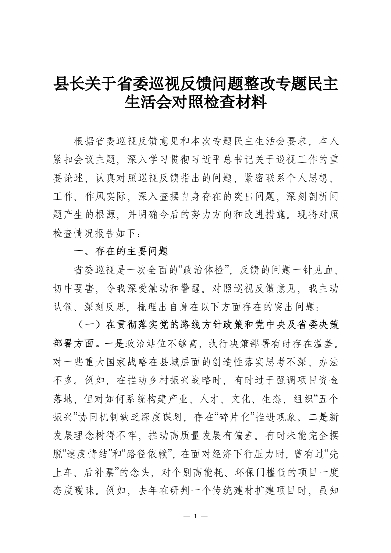 首页精选范文县长关于省委巡视反馈问题整改专题民主生活会对照检查材料