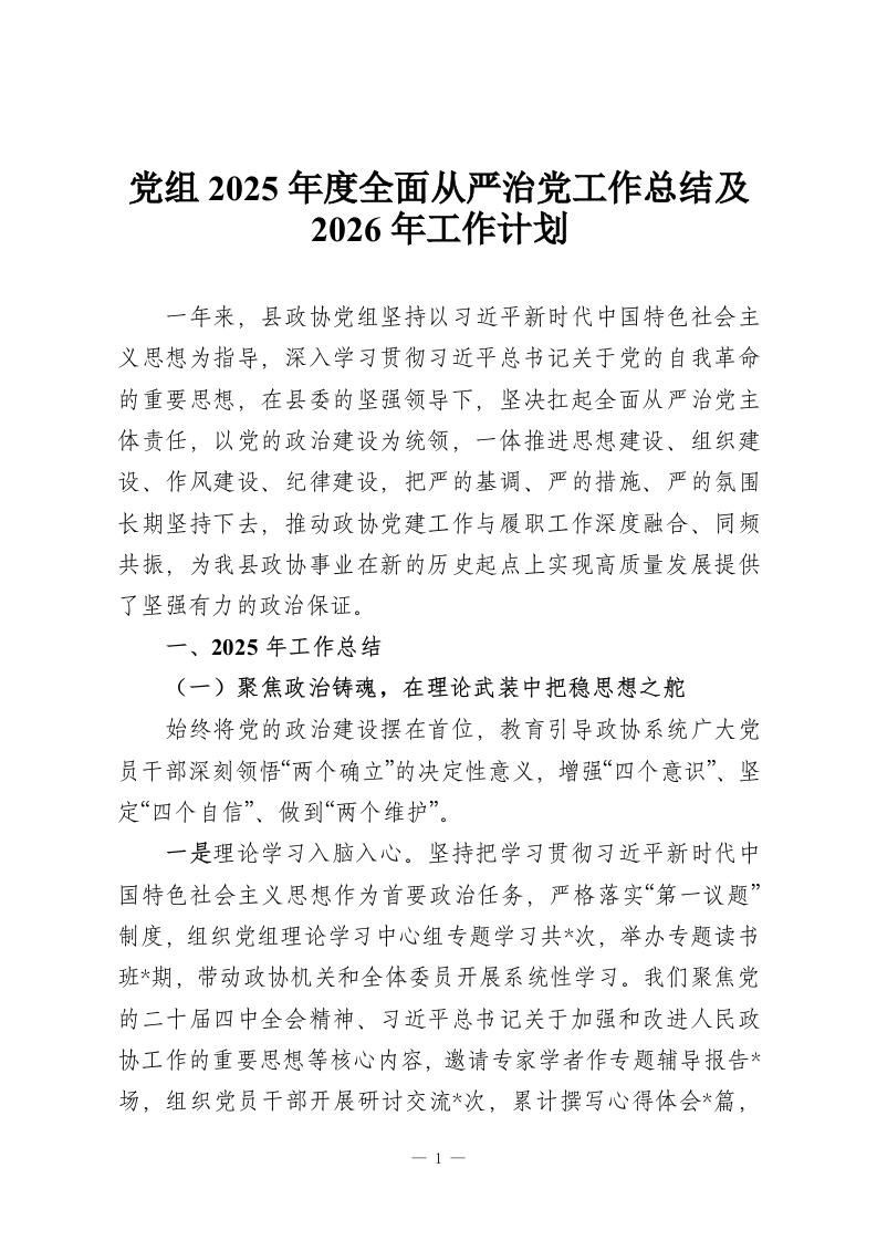首页精选范文党组2025年度全面从严治党工作总结及2026年工作计划