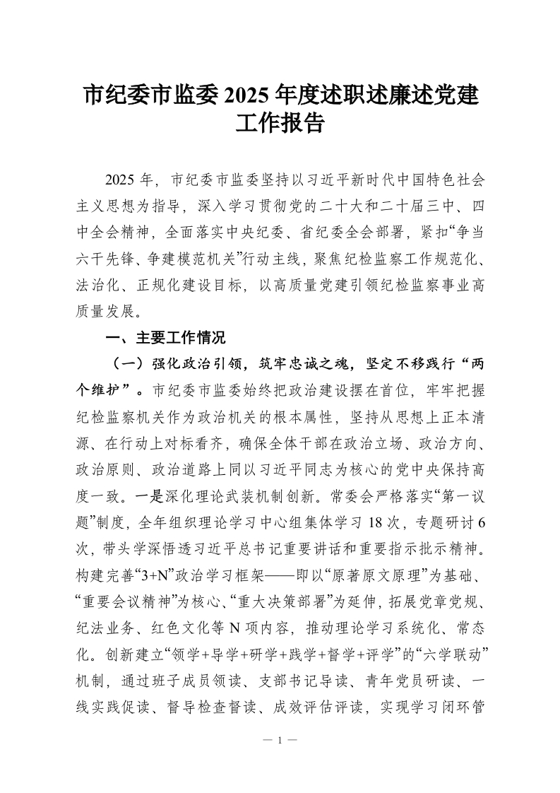 首页讲课讲稿市纪委市监委2025年度述职述廉述党建工作报告