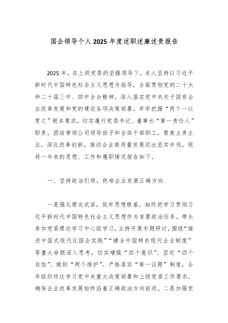 国企领导个人2025年度述职述廉述责报告_副本