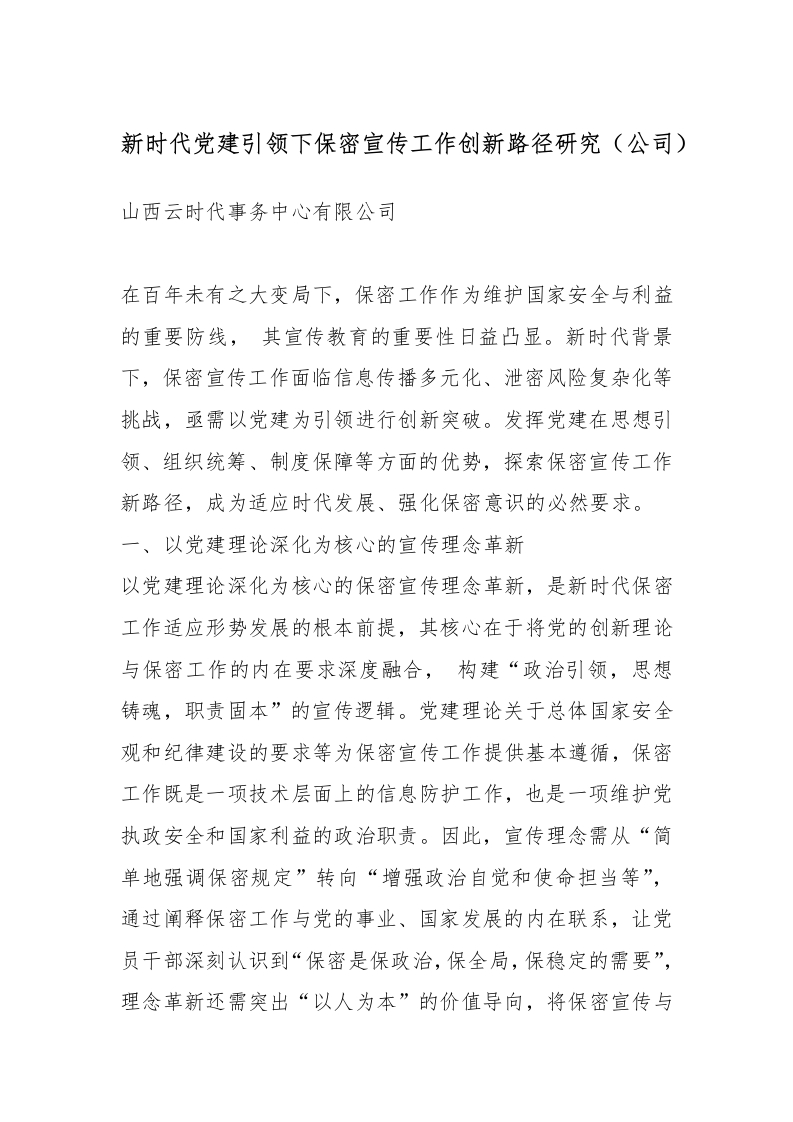 新时代党建引领下保密宣传工作创新路径研究(公司)_副本
