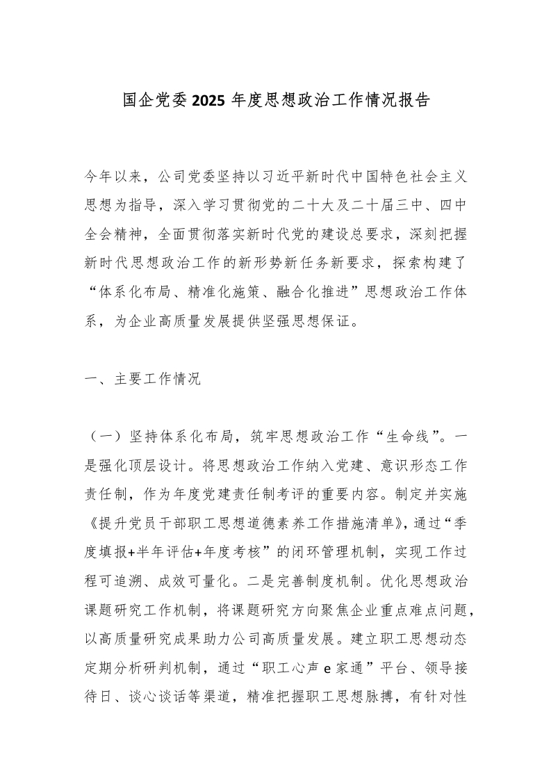 首页讲课讲稿国企党委2025年度思想政治工作情况报告_副本