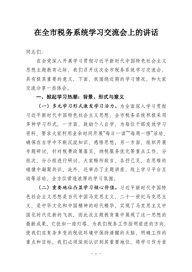 首页讲课讲稿在全市税务系统学习交流会上的讲话