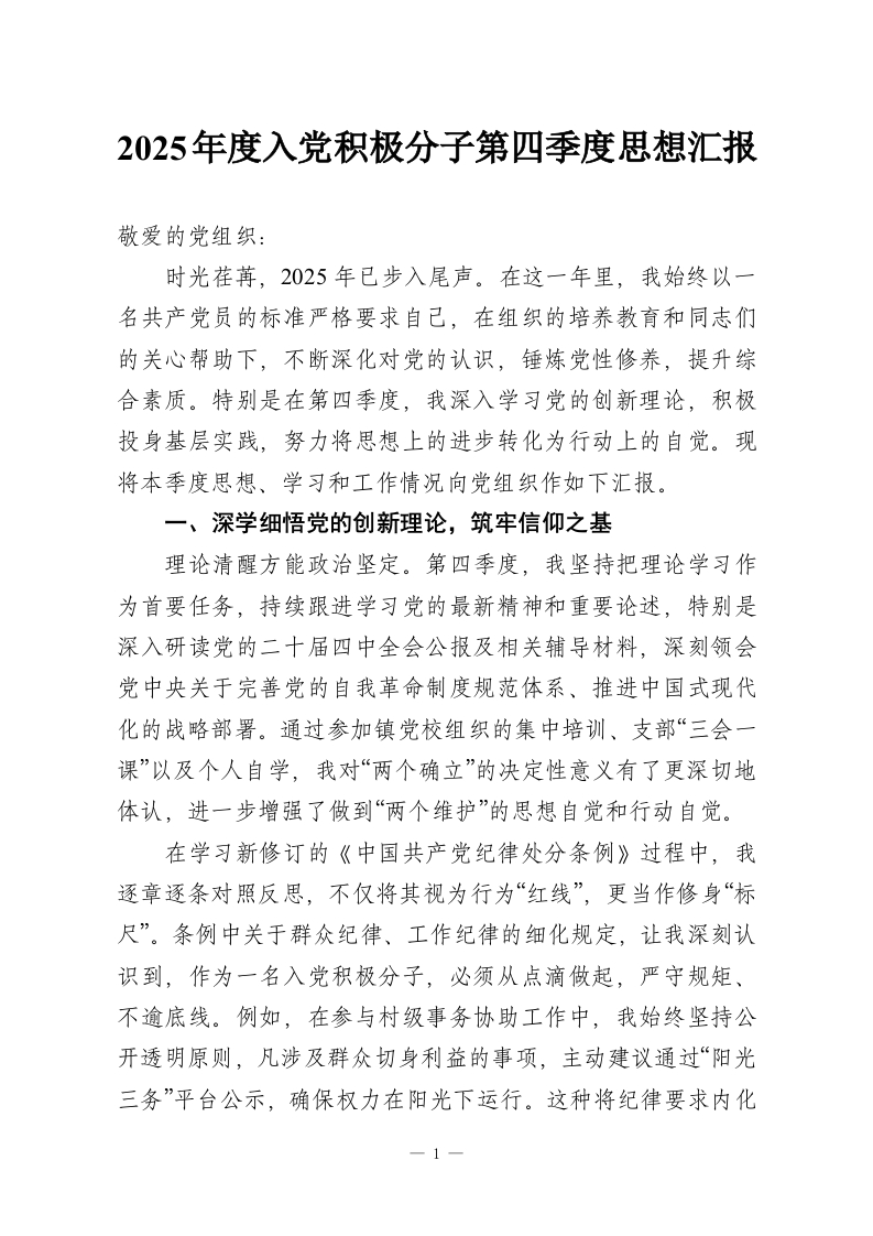 首页讲课讲稿2025年度入党积极分子第四季度思想汇报