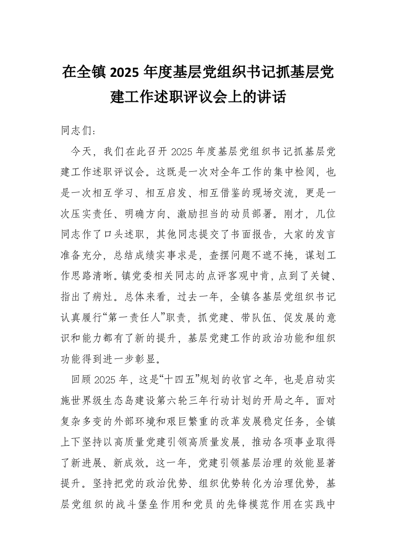 在全镇2025年度基层党组织书记抓基层党建工作述职评议会上的讲话