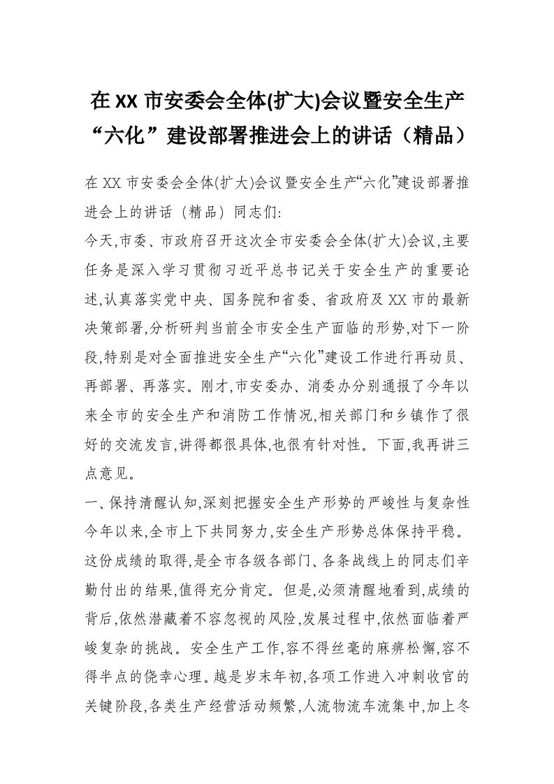 在XX市安委会全体(扩大)会议暨安全生产“六化”建设部署推进会上的讲话(精品)