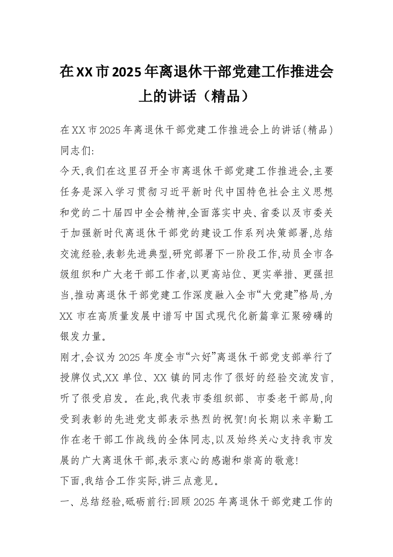 在XX市2025年离退休干部党建工作推进会上的讲话(精品)