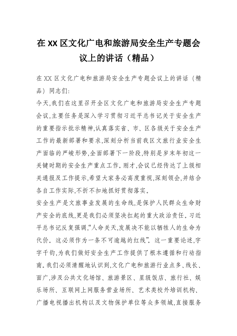 在XX区文化广电和旅游局安全生产专题会议上的讲话(精品)