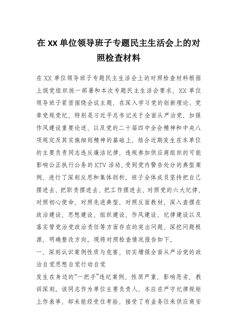 在XX单位领导班子专题民主生活会上的对照检查材料