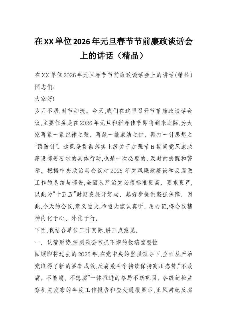 在XX单位2026年元旦春节节前廉政谈话会上的讲话(精品)