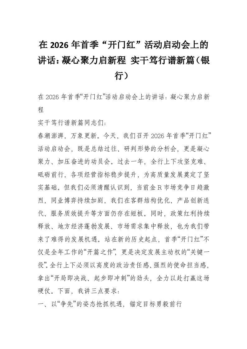 在2026年首季“开门红”活动启动会上的讲话:凝心聚力启新程 实干笃行谱新篇(银行)