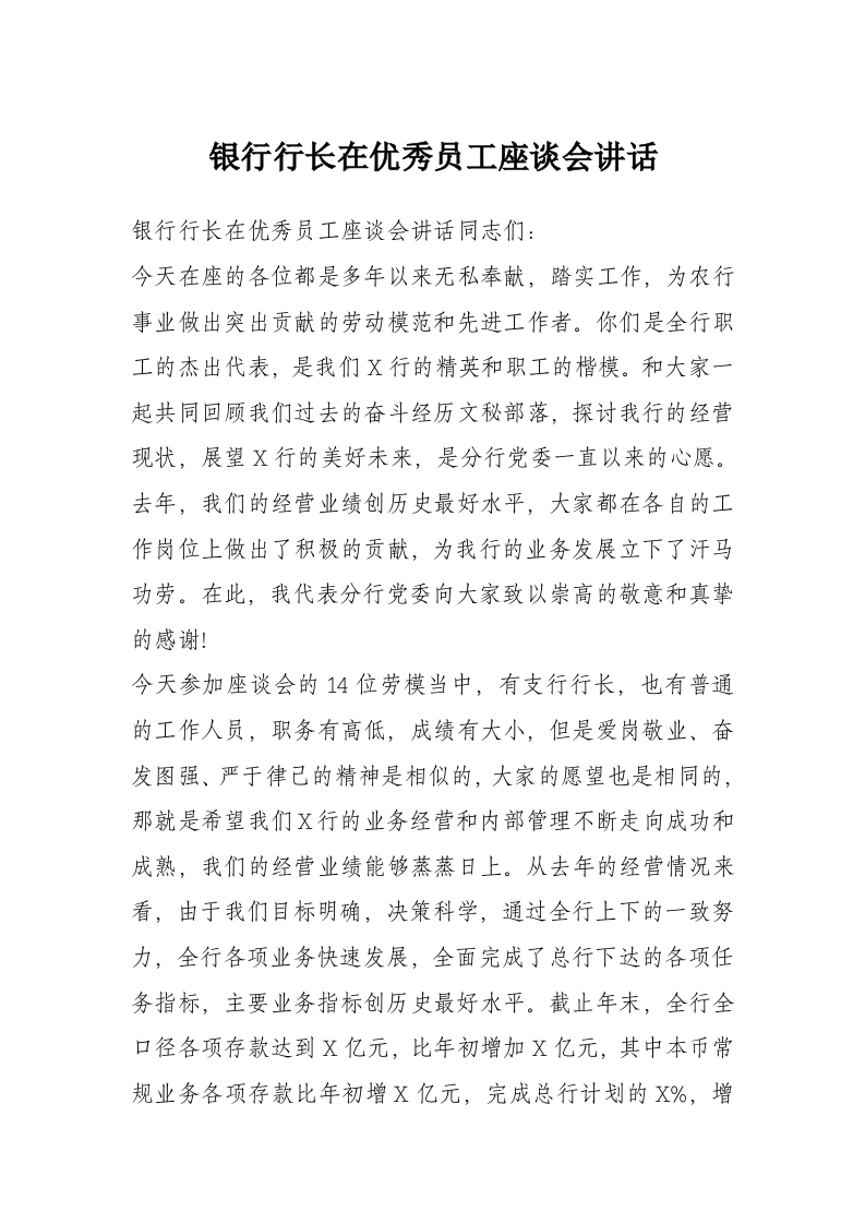 首页材料汇编银行行长在优秀员工座谈会讲话